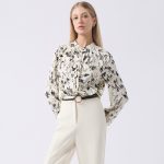 เสื้อเบลาส์แขนยาวลายดอกไม้ แบรนด์ ESPADA มาในโทนสีงาช้าง ลายพิมพ์ฟลอรัลสีเข้มตัดคอนทราส เนื้อผ้าซาตินมีความนุ่มลื่นสัมผัส ผ้าน้ำหนักเบาใส่สบายระบายอากาศได้ดี ตัดเย็บดีไซน์ทรงพอดีตัว ดีเทลกิมมิคของคอปกสไตล์จีนทรงตั้ง เสริมงานเย็บพินทัคลายเส้นแนวตั้งบนเนื้อผ้าไล่จากคอปกจนถึงชายเสื้อ