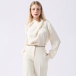 เสื้อเบลาส์แขนยาว แบรนด์ ESPADA ตัดเย็บด้วยผ้าทอแจ็คการ์ดเป็นลวดลาย Houndstooth พร้อมดีไซน์คอปกสุดเก๋ อีกไอเท็มหนึ่งในตัวเลือกสำหรับใส่ไปทำงาน คลีเอทลุคเรียบง่ายสำหรับวันที่อยากลดดีกรีความทางการ