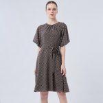 เดรสยาวทรงฟิตและแฟลร์ แบรนด์ ESPADA เนื้อผ้าโพลีเอสเตอร์ มีความนุ่มสัมผัสและทนทาน ลายพิมพ์ Geometric สีสันมีความโมเดิร์น แขนแต่งระบาย คอทรงกลม แต่งเชือกผูกที่ช่วงเอว