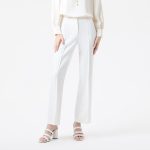 กางเกงขายาว ทรงบูทคัต สีขาว สำหรับผู้หญิงที่มองหากางเกงที่ช่วยเน้นส่วนเว้าโค้ง สามารถแต่งตัวได้ทั้งแบบเป็นทางการและไม่เป็นทางการ แมทช์คู่กับเสื้อเชิ้ตทรงหลวม หรือสวมทับด้วยเบลเซอร์ สูทเท่ ๆ ทรงโอเวอร์ไซซ์สักตัว จับคู่กับรองเท้าส้นสูง หรือผ้าใบก็ดูดีทุกลุค
