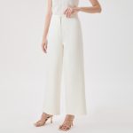 – กางเกงทรงขากว้างผ้าทวีต สีไอเวอรี่