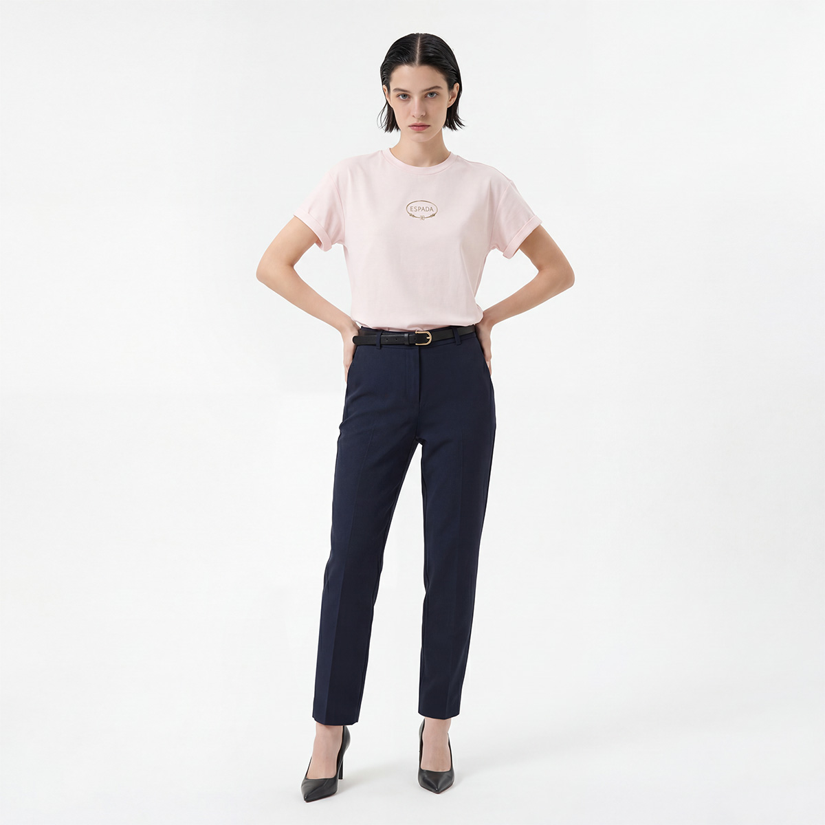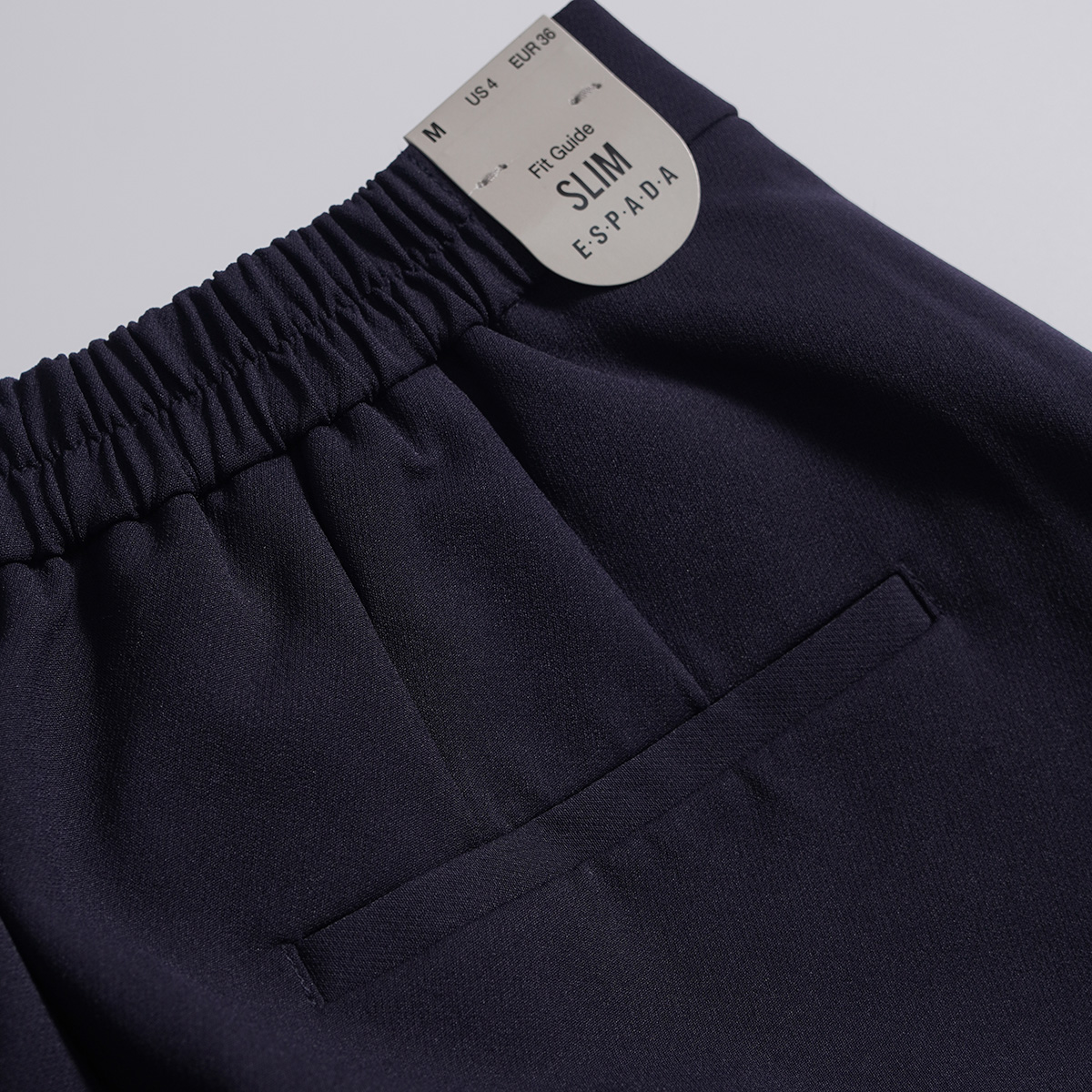 กางเกงเอวยางยืด แบรนด์ ESPADA เสริมลุคสวยมั่นใจ ดีไซน์ทรงสลิม ระดับเอวปกติ ช่วงขาพอดีใส่สบายไม่อึดอัด มีกระเป๋าทั้งสองข้าง เพิ่มดีเทลแต่งขอบกระเป๋าหลอกด้านหลัง ใส่ง่ายด้วยขอบยางยืดที่เอวด้านหลัง เนื้อผ้าทอลายทแยงมีเท็กเจอร์ แมทช์กับเสื้อเบลาส์ง่ายๆก็ใส่ได้กับทุกโอกาส