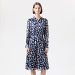 เดรสเชิ้ตแขนยาว สีน้ำเงิน สำหรับผู้หญิงที่ต้องการความเรียบหรู แต่มีสไตล์ ดีไซน์คอปกเชิ้ตให้ความเรียบร้อย ขณะเดียวกันก็โดดเด่นด้วยความพลิ้วไหวของผ้าชีฟองลายเสือดาว สามารถปรับขนาดช่วงเอวได้ตามต้องการด้วยเข็มขัดผ้าในตัว เหมาะสำหรับใส่ในหลากหลายโอกาส ตั้งแต่วันทำงาน จนถึงวันพักผ่อน