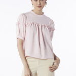 เสื้อคอจีนแต่งระบาย สีโรสพิงค์| Stand Collar Blouse with Ruffle Detail | 04708