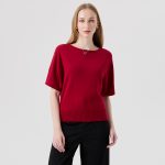 เสื้อสเวตเตอร์ สีแดง ดีไซน์คอปาดใส่แบบสวมหัวได้อย่างสะดวก แขนสั้นสไตล์ปีกค้างคาว ดีเทลทอริบจั๊มบริเวณชายเสื้อเพิ่มความคล่องตัวขณะสวมใส่ ตัดเย็บทรงหลวมใส่สบาย เนื้อผ้านุ่ม ระบายอากาศได้ดี ยืดหยุ่นและมีความทิ้งตัว แมทช์เข้ากับท่อนล่างได้หลากหลายสไตล์