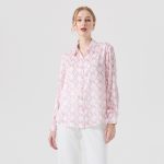 เสื้อเชิ้ต แขนยาว พิมพ์ลายโมโนแกรมในโทนสีชมพูตลอดทั้งตัว มาพร้อมแถบกระดุมสีทองปั๊มตัวอักษร ESPADA แบบเปิดออกได้จากคอถึงชายเสื้อ ที่ปลายแขนเย็บกลัดกระดุมสองเม็ดเพื่อเพิ่มความคล่องตัวขณะสวมใส่ ดีเทลชายเสื้อเย็บแบบโค้งเล็กน้อย หรูหราด้วยโลโก้ชาร์มสีทองที่ชายเสื้อด้านซ้าย เนื้อผ้าซาตินแฟนซีมีเท็กซ์เจอร์ในตัว โปร่งสบายแต่ไม่โป๊ด้วยซับในชิ้นหน้า ใส่แมทช์เข้าได้กับยีนส์ และกางเกงหรือกระโปรงในโทนสีพื้น