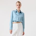 – เสื้อเชิ้ตลายโมโนแกรมสีฟ้า