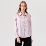 เสื้อเชิ้ต แขนยาว สีชมพูเฉดกลาง ตัวเสื้อพิมพ์ลายโลโก้แบบโมโนแกรมสีเทา มาพร้อมแถบกระดุมปั๊มตัวอักษร ESPADA สีเงิน แบบเปิดออกได้จากคอถึงชายเสื้อ ที่ปลายแขนกลัดกระดุมสองม็ดเพื่อเพิ่มความคล่องตัวขณะสวมใส่ หรูหราด้วยโลโก้ชาร์มสีเงินที่ชายเสื้อด้านซ้าย เนื้อผ้าซาตินสวมใส่สบาย ระบายอากาศได้ดี แมทช์เข้ากับท่อนล่างได้หลากหลายสไตล์