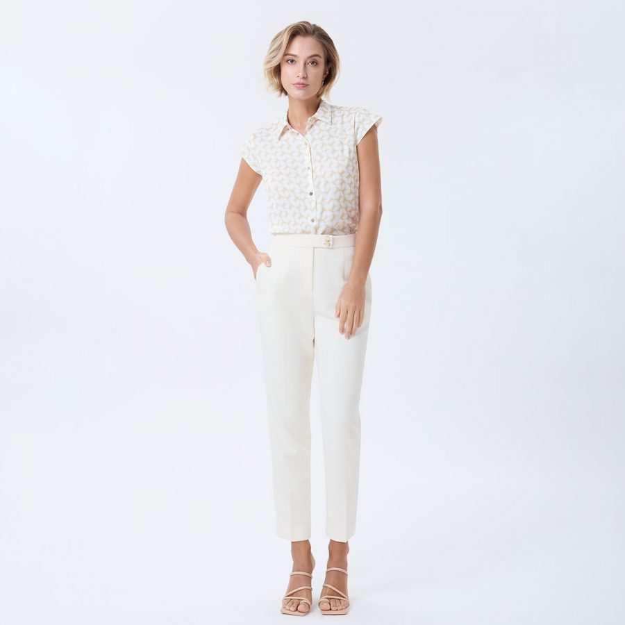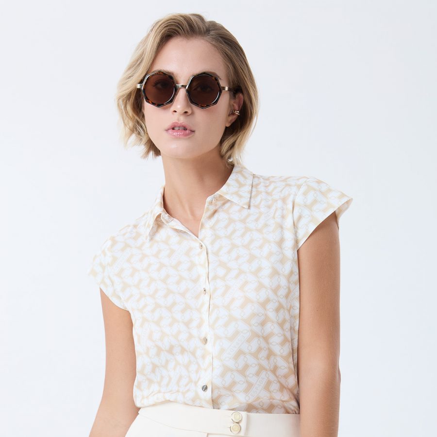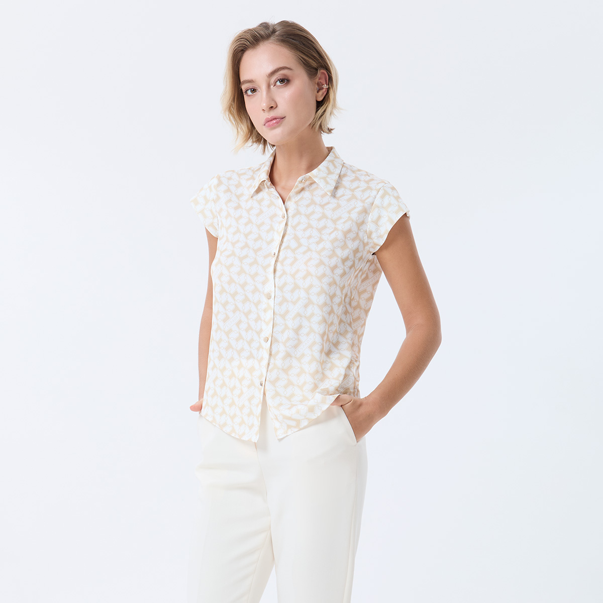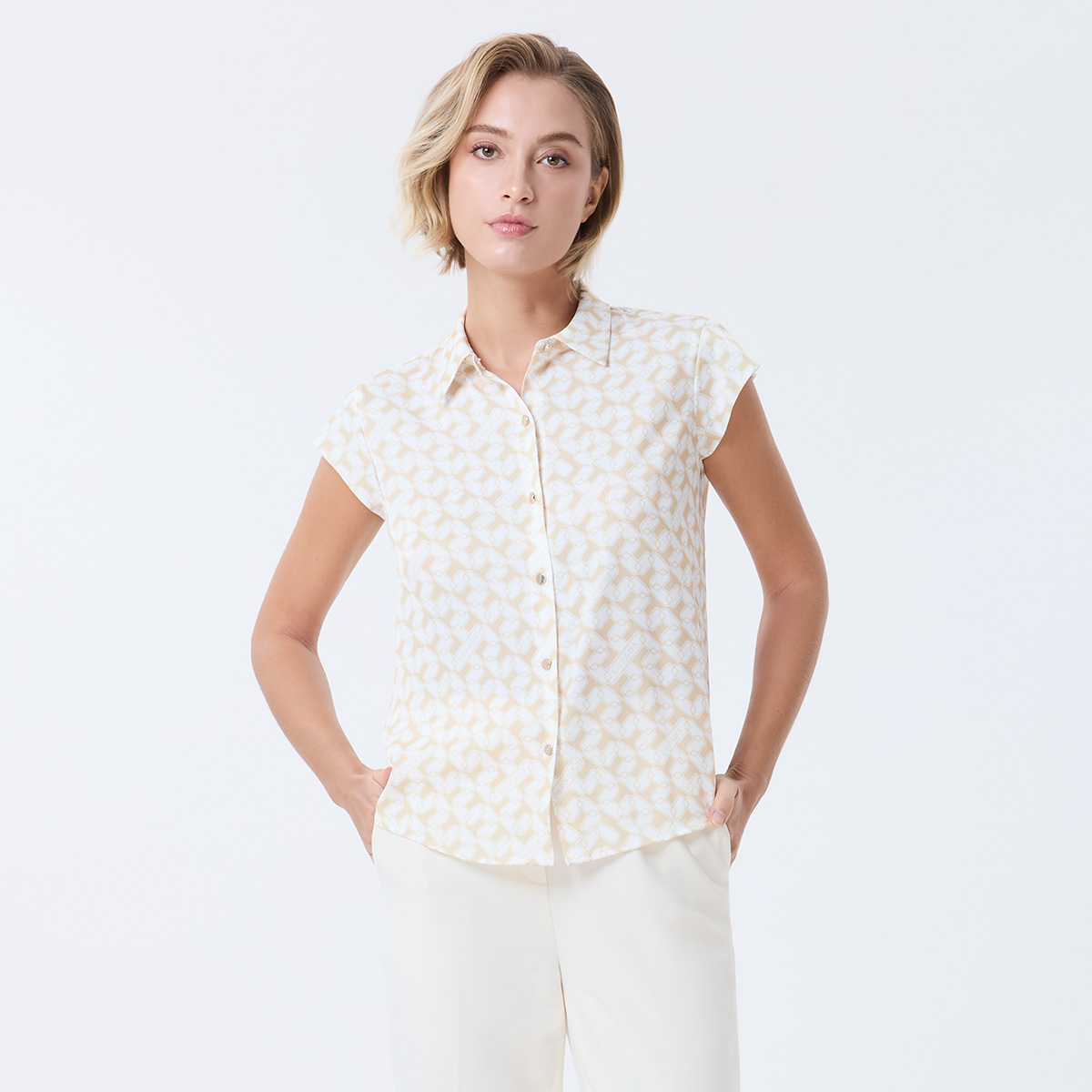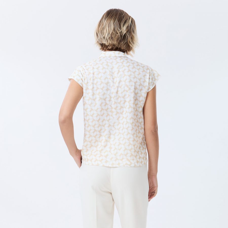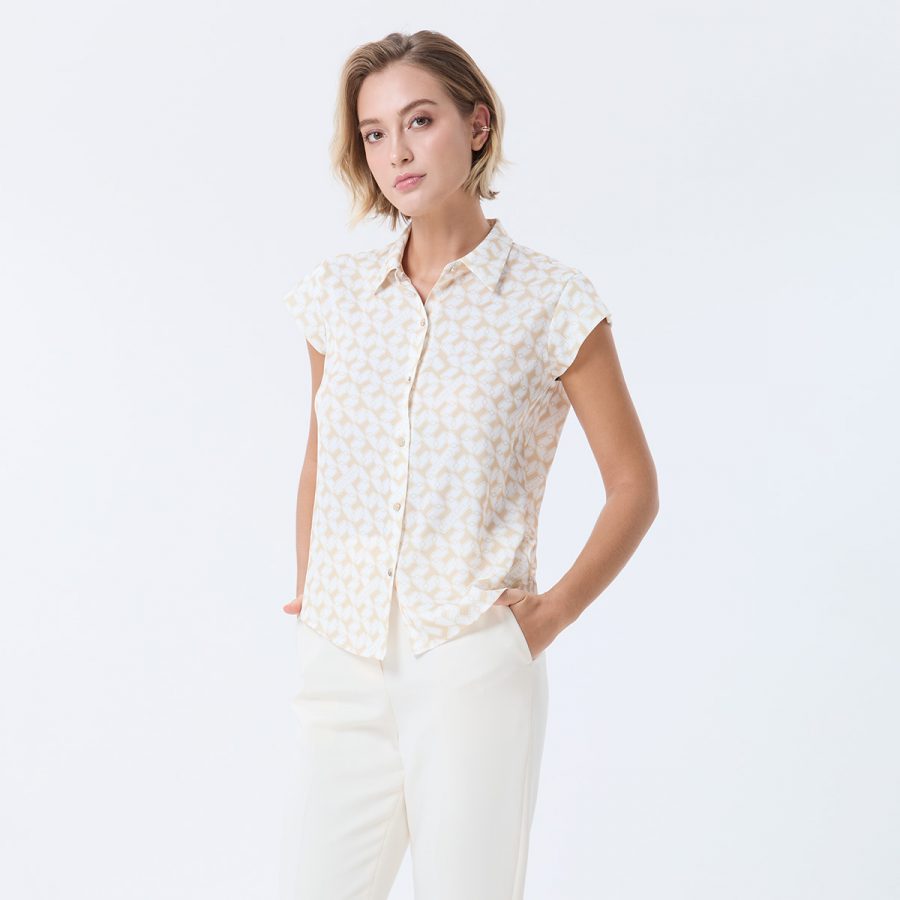 – เสื้อเชิ้ตลายจีโอเมตริก สีเบจ
