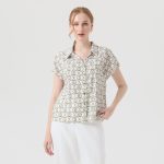 เสื้อเบลาส์ แขนล้ำ สีไอเวอรี่ พิมพ์ลายเข็มขัดและโซ่ มาพร้อมแถบกระดุมปั๊มลายตัวอักษร ESPADA สีทอง แบบเปิดออกได้จากคอถึงชายเสื้อ หรูหราด้วยโลโก้ชาร์มสีทองที่ชายเสื้อด้านซ้าย ใส่แมทช์เข้าได้กับยีนส์ และกางเกงหรือกระโปรงในโทนสีพื้น