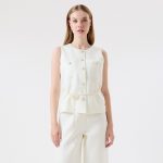 – เสื้อเบลาส์แขนกุด ผ้าทวีต สีไอเวอรี่