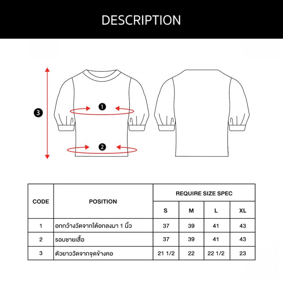 – ดีเทลแขนเสื้อพอง จับจีบช่วงคอ หัวไหล่และปลายแขน