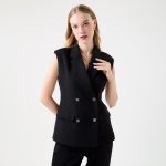 – เสื้อเบลเซอร์แขนกุดคอปกสีดำ