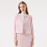 – เสื้อแจ็คเก็ตผ้าทวีตสีชมพู คอกลม